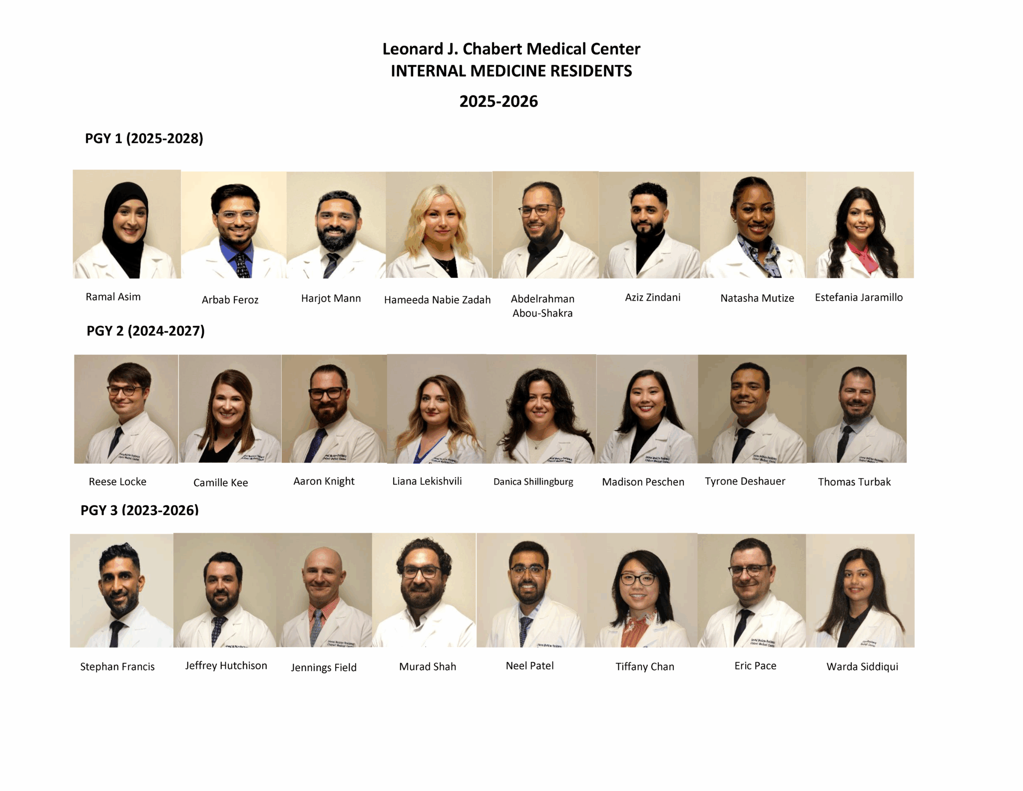 SLMA employs all residents in the ACGME accredited Leonard J. Chabert Medical Center Internal Medicine Residency Program (ACGME # 1402121537). We currently have 24 categorical positions (8 per PGY level) in our three year program.